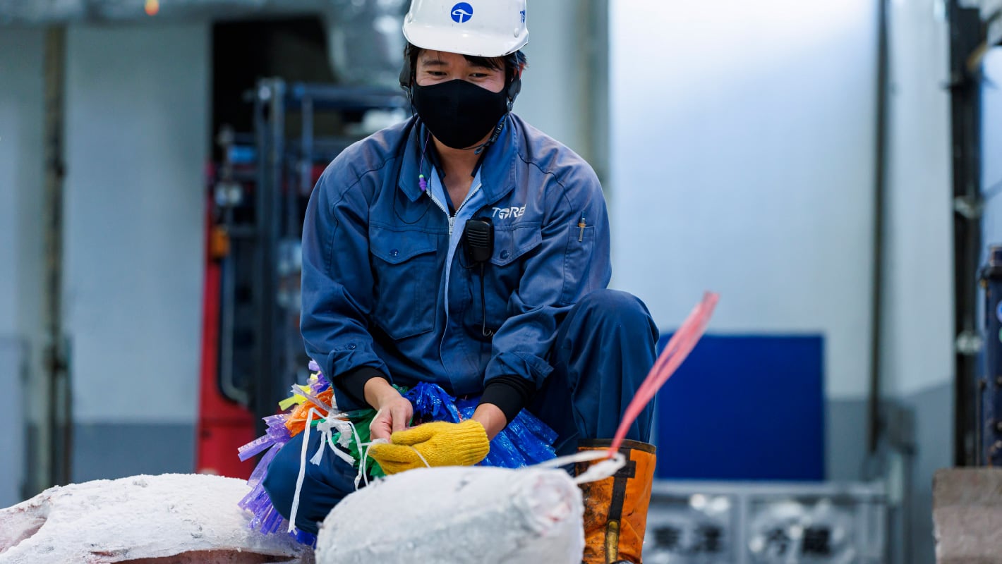 現在、物流冷蔵部 物流冷蔵第一課で働いています。物流冷蔵部は、水揚げされた冷凍マグロの入庫保管管理、出荷するところまで担当しています。私は、在庫管理と入出庫時の計量を担当しています。作業中には同僚、運転手と相談し、連携をとりながら、いかに効率良く入出庫作業が出来るかと考えています。